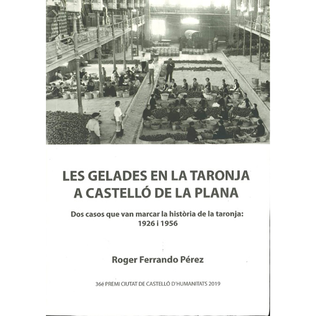 Sinopsi: Les terres castellonenques estan situades en el límit climàtic que permet el cultiu de la taronja, i per tant, poden patir els greus riscos de les gelades hivernals. Este treball se centra en dos de les gelades més importants del segle XX (1926 i 1956), tractant de ser una aportació a la història ambiental de la taronja. L’obra ha obtingut el 36é Premi Ciutat de Castelló d’Humanitats 2019.